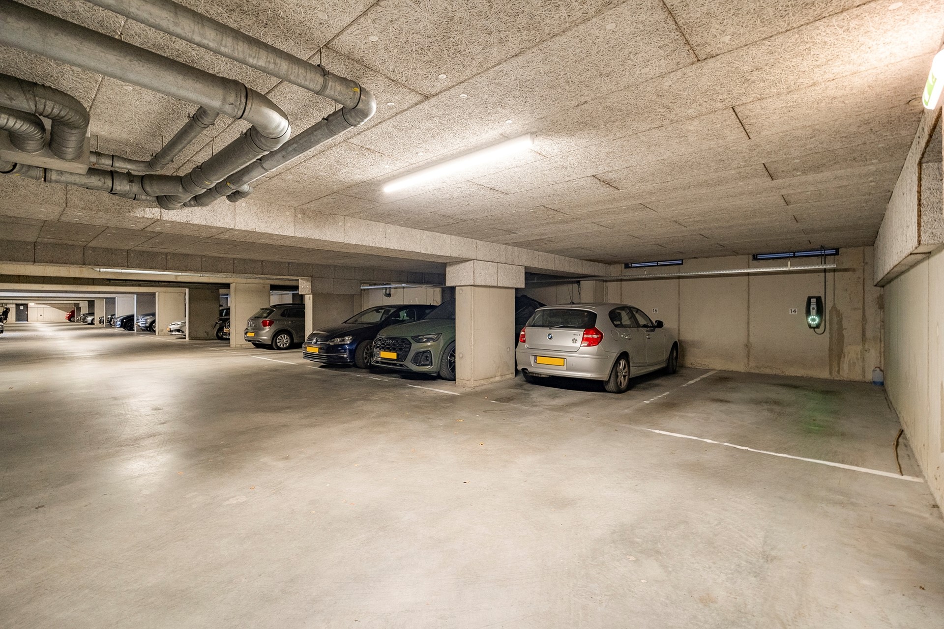 Ruime (fietsen)berging en een privéparkeerplaats in de parkeerkelder, voorzien van eigen laadpaal.