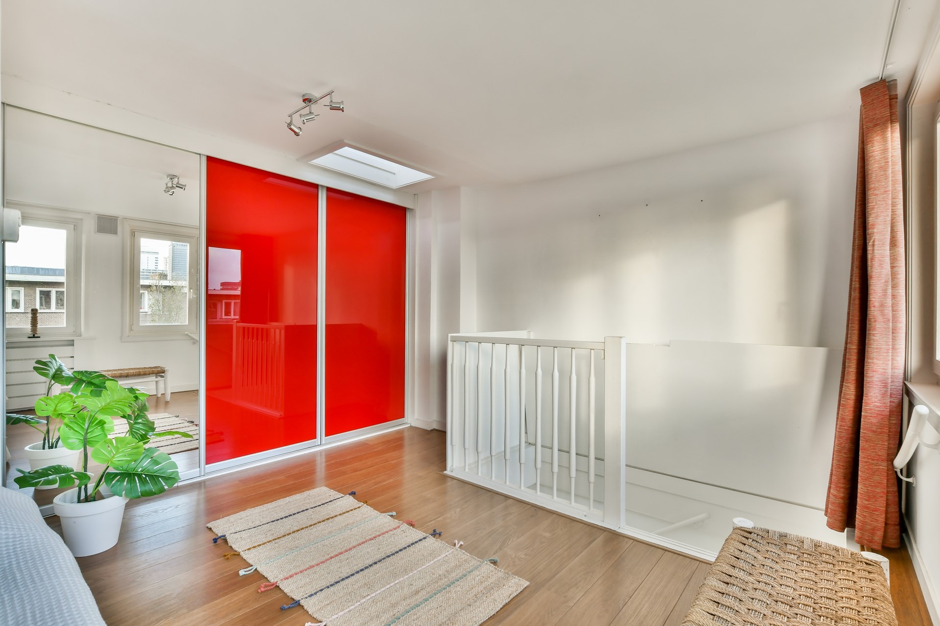 Op de bovenste verdieping ligt een royale, lichte slaapkamer met inbouwkast. Een fijne, rustige plek voor wie privacy zoekt of veel thuiswerkt.