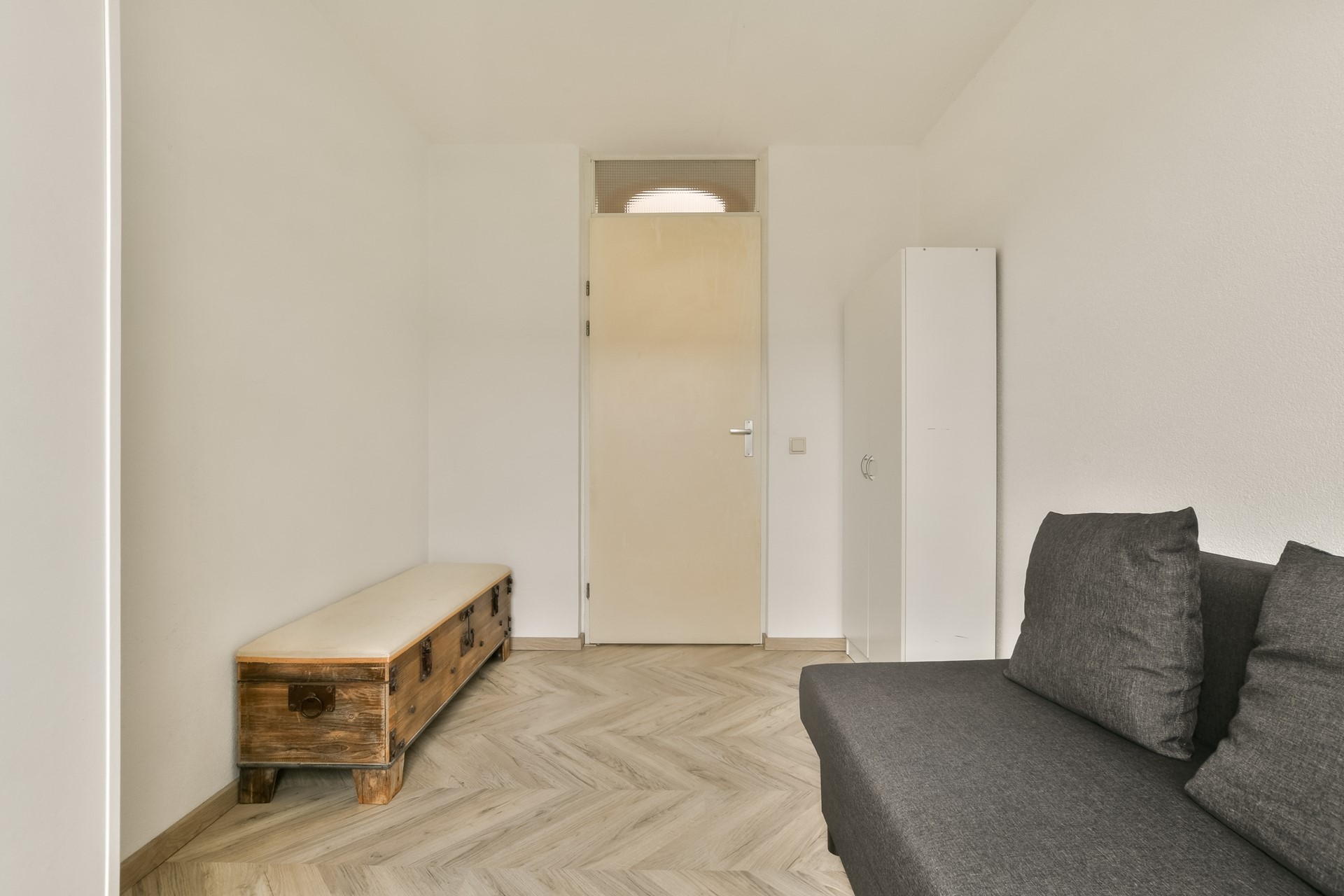 Je komt binnen in de hal met toegang tot alle vertrekken. Aan de rechterzijde bevindt zich een ruime berging met wasmachineaansluiting. Het separate toilet en de moderne badkamer zijn recent vernieuwd en uitgevoerd in een stijlvolle, tijdloze afwerking met inloopdouche en dubbele wastafelmeubel.