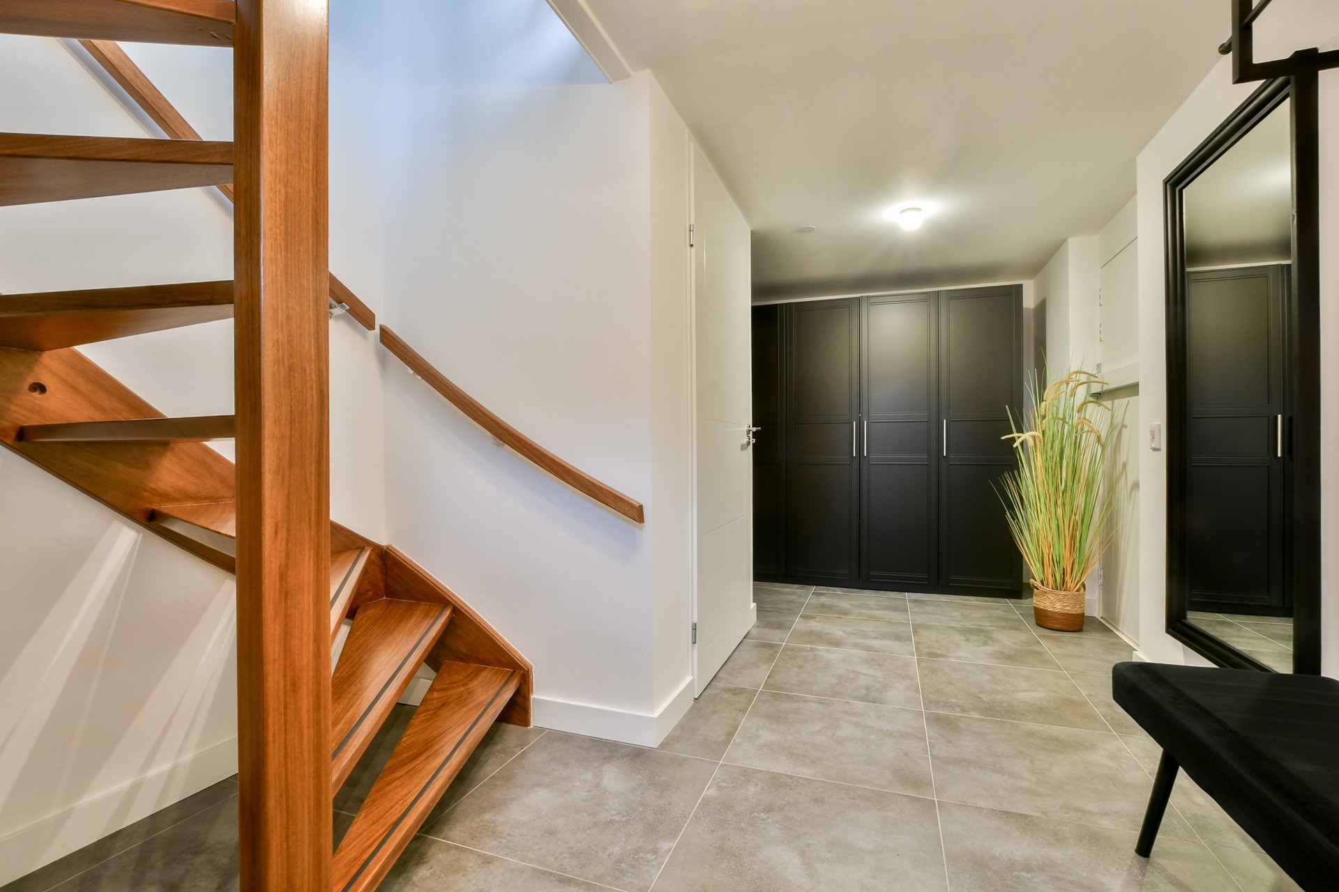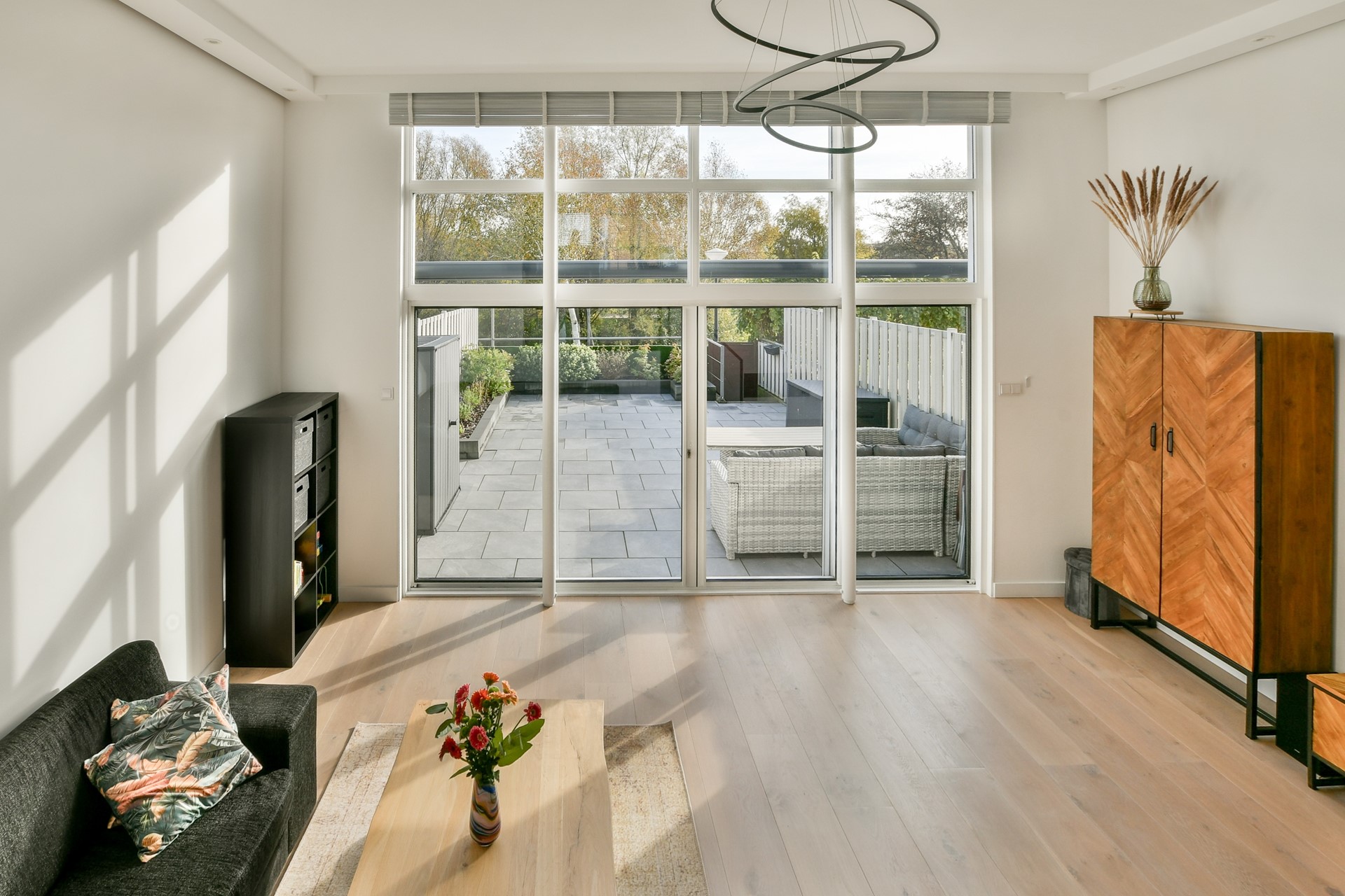 The kitchen and all sanitary facilities were fully renewed in 2021. The kitchen has a modern design and is fitted with high-quality built-in appliances, including a Quooker with a 7-litre boiler. The bathrooms, also installed in 2021, have a luxurious feel with beautiful materials and contemporary finishes. Both the living room and the kitchen feature a beautiful wooden floor. In the living room, steel railings and staircases create a stylish, industrial look, while the steel sliding doors between the kitchen and living area perfectly complement the home’s high-quality finish.