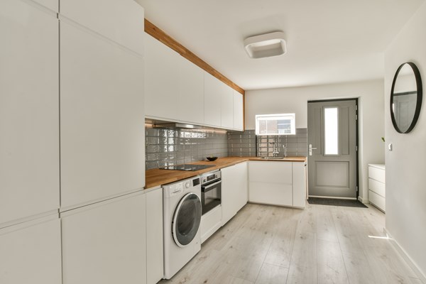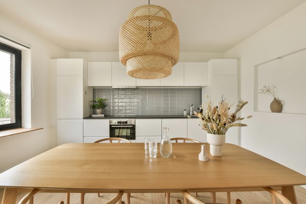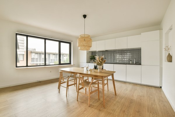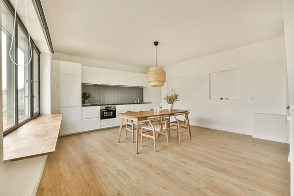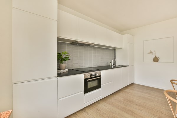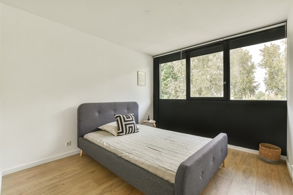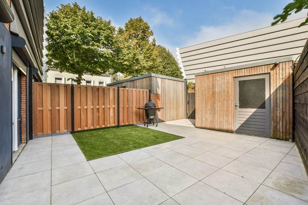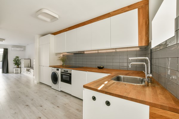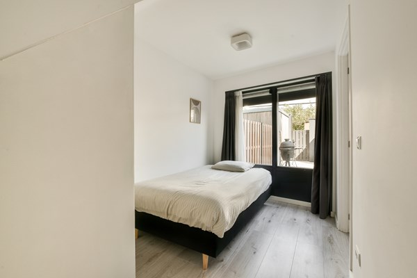Through the elegant entrance on the ground floor, you take the stairs to the first floor, where you'll find a spacious living room at the front and an open kitchen at the rear. Large windows provide amplef natural light and beautiful views. Adjacent to the living area is a generous dining space with a modern kitchen. On the second floor, there are 3 bedrooms,with the largest measuring over 15 m² and offering access to a rooftop terrace (over 12 m²). There is also a modern bathroom with a bathtub and toilet and a large storage room with a washing machine connection. The generous internal living space on the ground floor offers access to the garden and features an open kitchen with a solid oak worktop and a quooker, a tidy bedroom, and a modern bathroom with a shower and toilet.