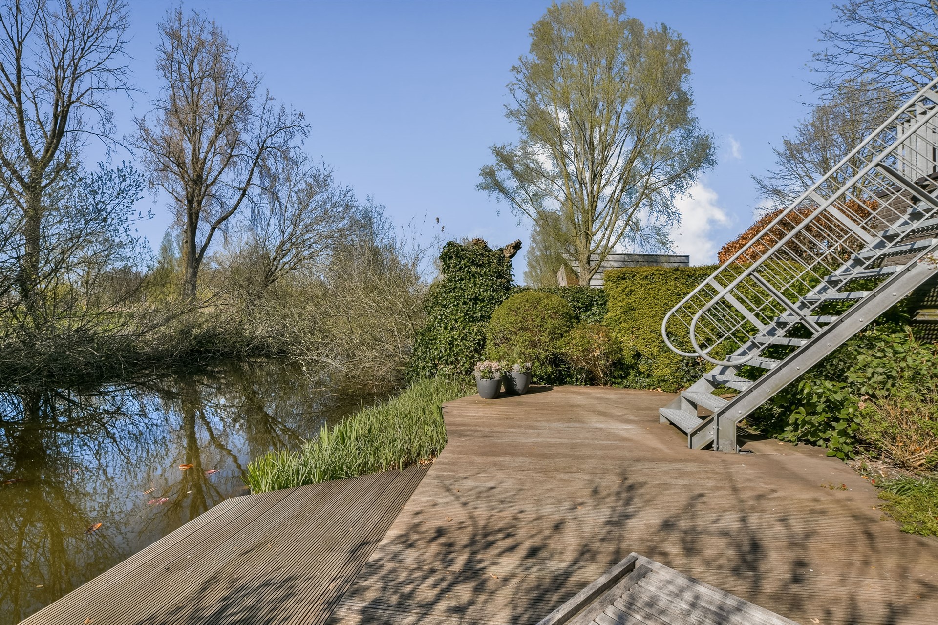 The garden is directly on the water and offers multiple seating areas. The terrace and garden face southwest, allowing you to enjoy the sun well into the evening. Privacy and freedom go hand in hand here.