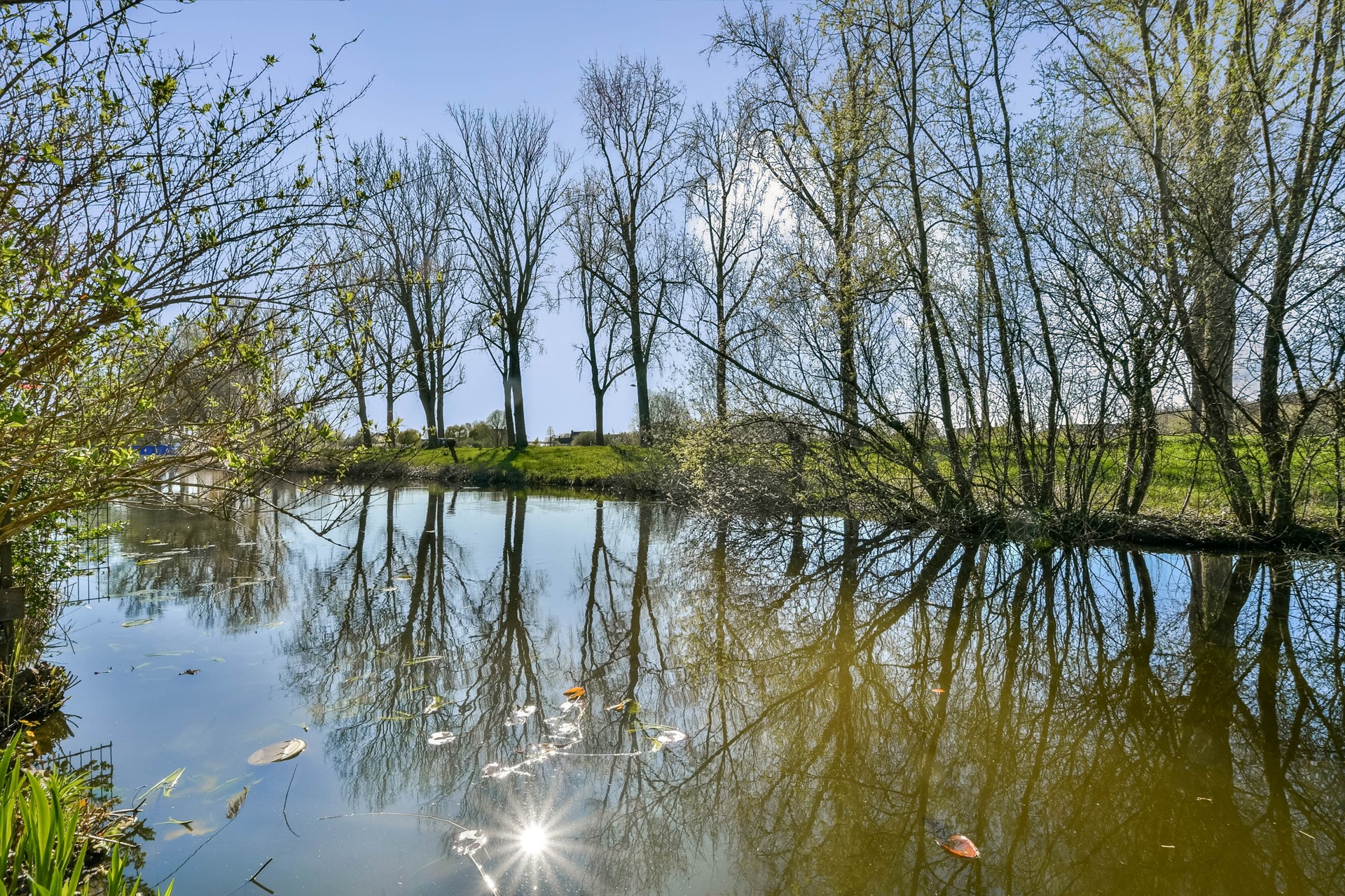 In de zomer kijk je uit over groen en weilanden, in de winter, als het meezit, stap je zo het ijs op.