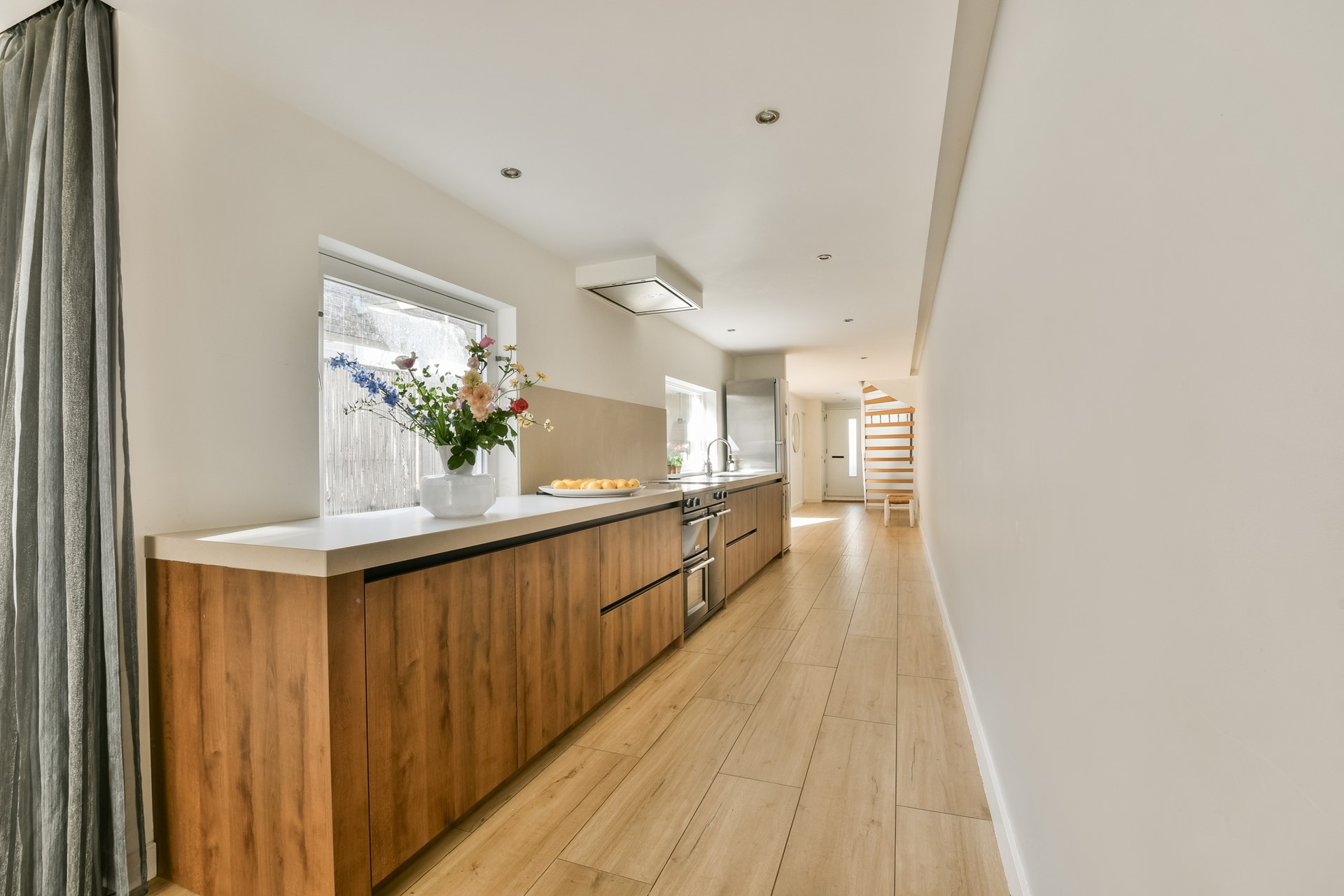 What truly sets this home apart is its impressive depth of no less than 20 metres. This creates an exceptional sense of space and a playful, open-plan layout. Upon entering, the remarkable depth is immediately noticeable, with the dining area, kitchen and living room flowing seamlessly into one another.