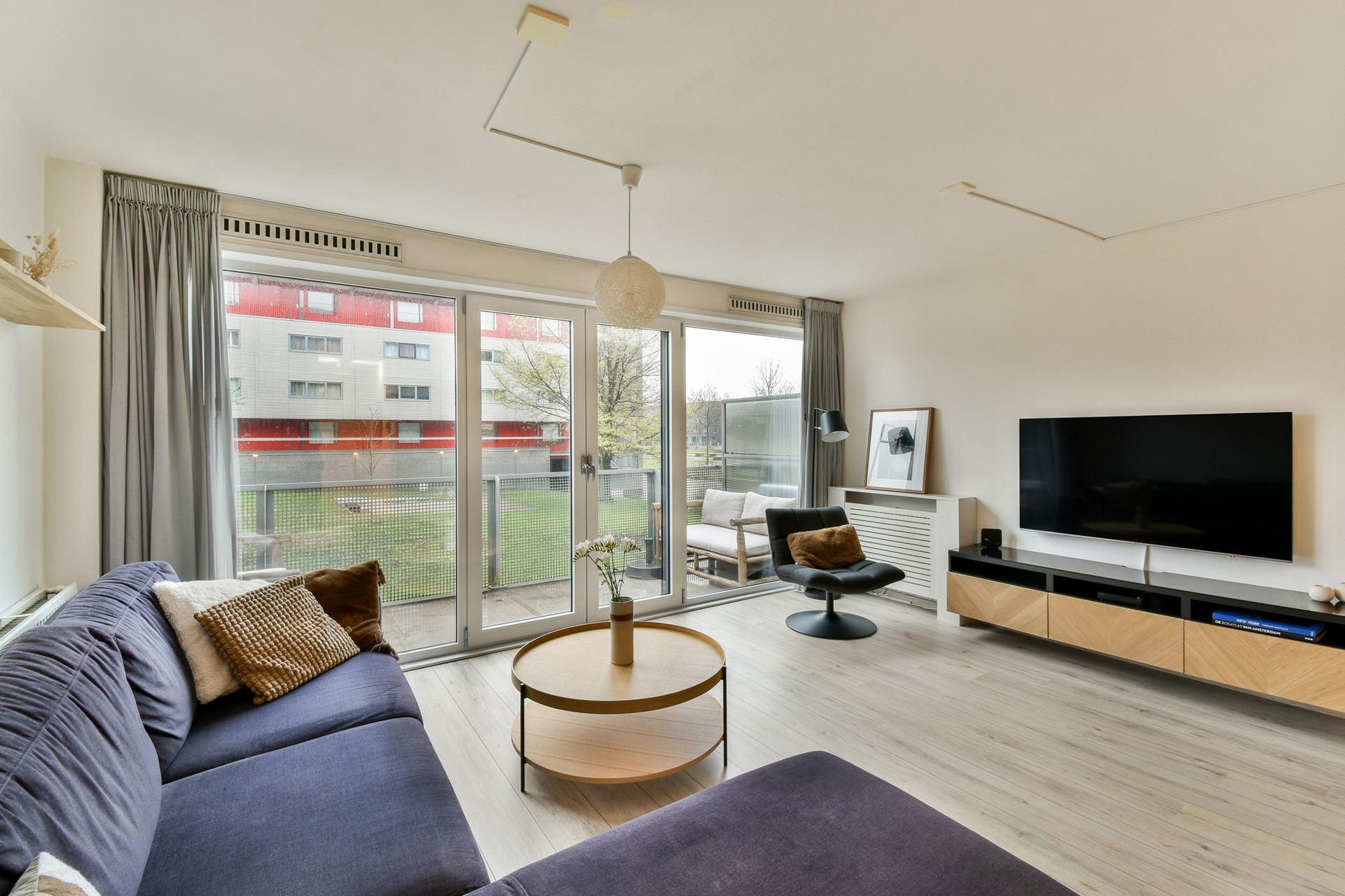 Upon entering, the bright and spacious feel is immediately noticeable. The large windows in the living room allow plenty of natural light to flood the space, creating a warm atmosphere, a place where you will feel at home right away. With its neat laminate flooring and smoothly finished walls, the property is ready to move into.