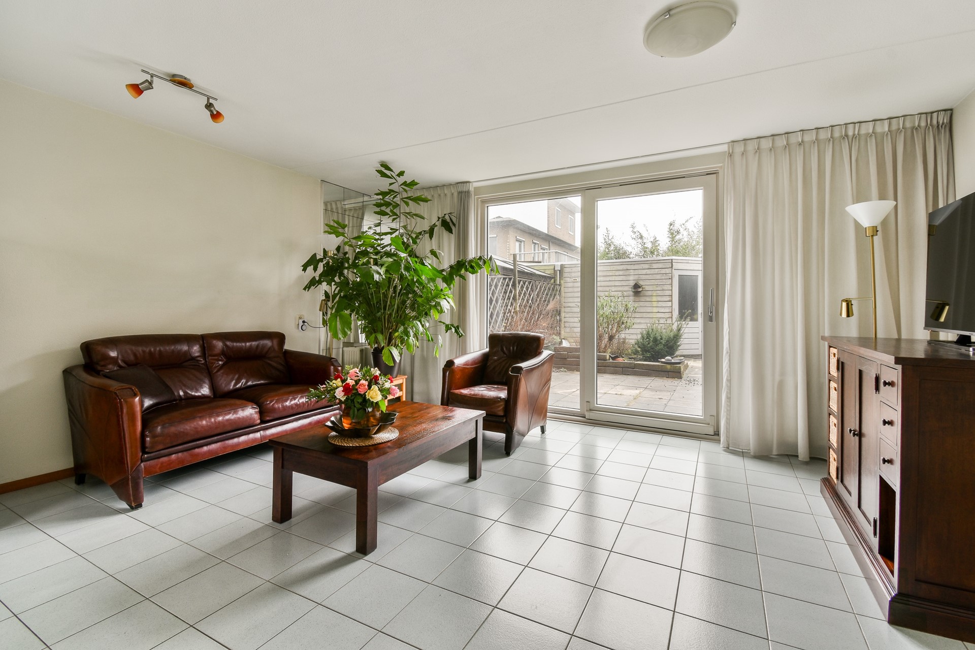 Via de entree komt u in de hal met toilet en toegang tot de meterkast (extern bereikbaar). De ruime woonkamer is gelegen aan de tuinzijde en voorzien van schuifpui naar de zonnige achtertuin.