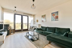 De woonkamer is gelegen aan de achterzijde en vormt het hart van de woning. Hier woon je in alle rust met een weids uitzicht over de Sloterplas en het omliggende groen. Vanuit de woonkamer stap je direct het balkon op.