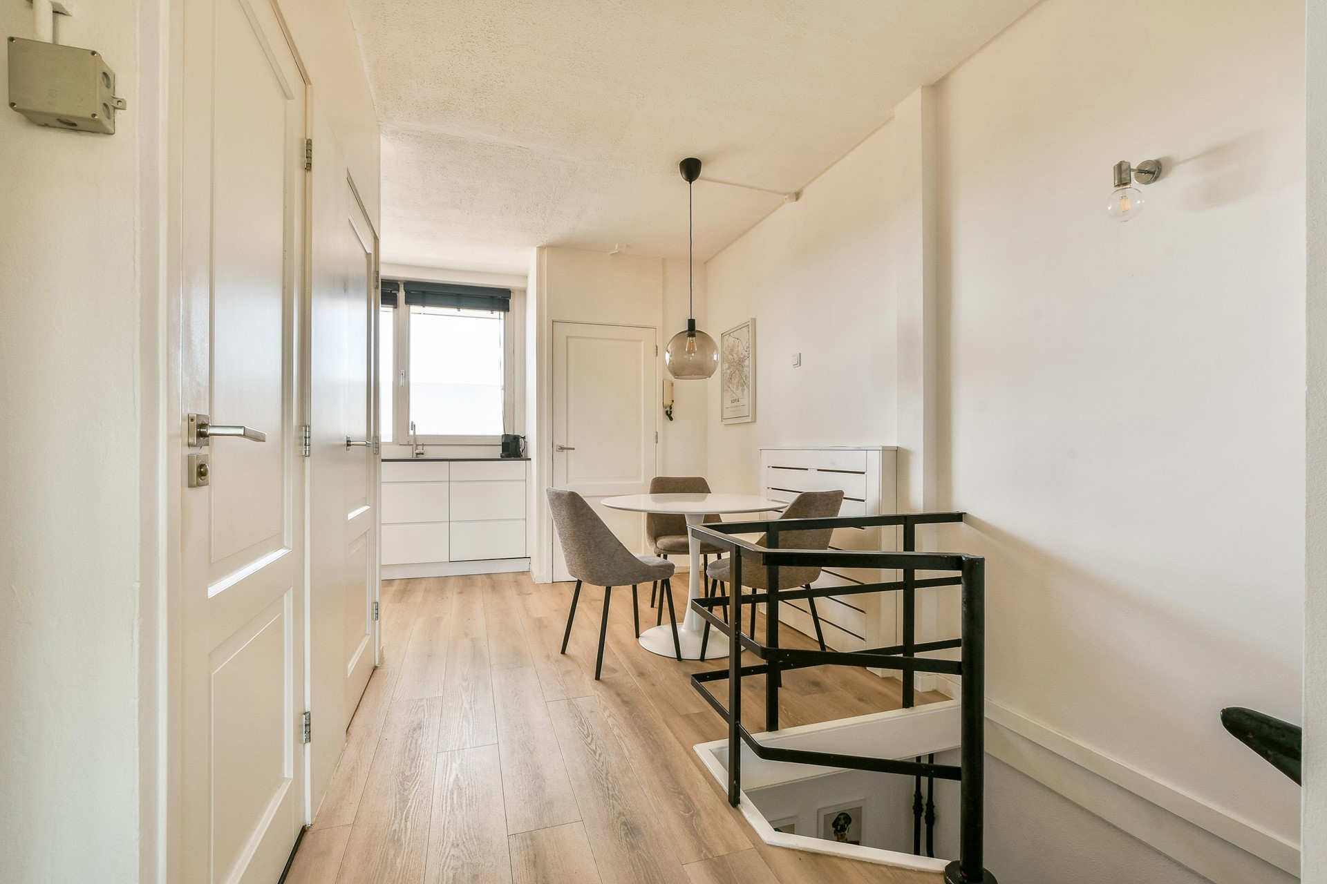 Via de entree op de vierde verdieping kom je binnen in de hal, die toegang geeft tot de verschillende ruimtes. Aan de galerijzijde bevindt zich de moderne keuken (2021) met royaal werkblad en inbouwapparatuur. De keuken beschikt over veel daglicht en is praktisch ingedeeld. Daarnaast is er een aparte wasruimte met aansluitingen voor de wasmachine.