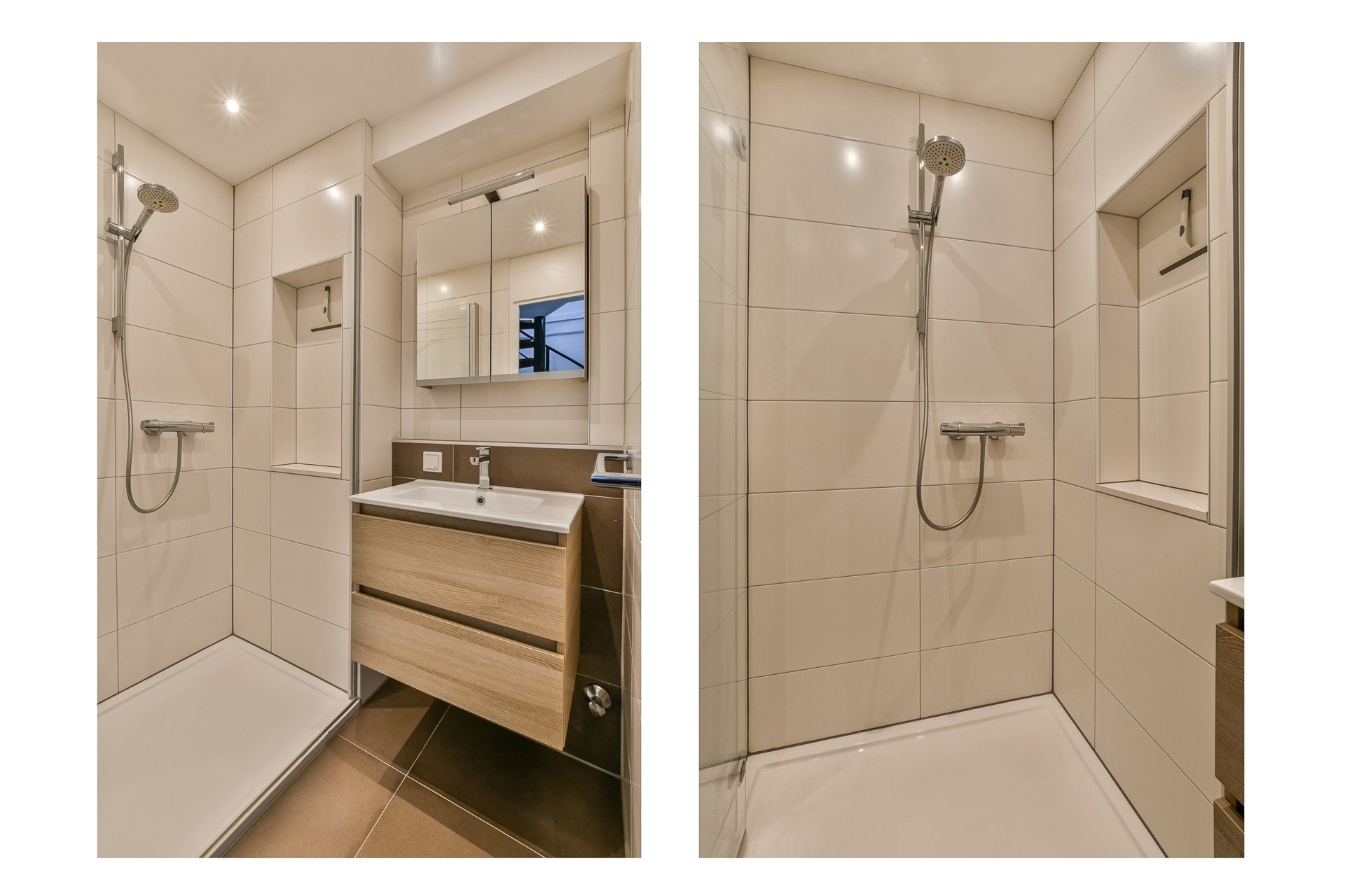 De badkamer is vernieuwd en netjes afgewerkt. De ruimte beschikt over een ruime douche en een wastafelmeubel. Daarnaast is er extra bergruimte aanwezig op deze verdieping.
